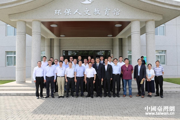 臺灣嘉賓在大愛科技公司環(huán)保人文教育館合影留念。(圖片來源:四川省臺辦)