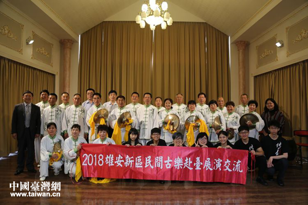 中國(guó)臺(tái)灣網(wǎng)5月17日保定訊 日前,由雄安新區(qū)25位民間古樂藝人組成的“雄安新區(qū)民間古樂”文化交流團(tuán)走進(jìn)臺(tái)灣,在臺(tái)北、桃園、新竹、新北等地舉辦了5場(chǎng)展演出,受到當(dāng)?shù)孛癖姷臒崃覛g迎。展示了雄安新區(qū)非遺文化傳承和保護(hù)成果,宣傳了國(guó)家京津冀一體化發(fā)展戰(zhàn)略和雄安新區(qū)建設(shè),通過交流經(jīng)驗(yàn)、切磋技藝、增進(jìn)友誼,搭建了兩岸古樂文化交流的橋梁。