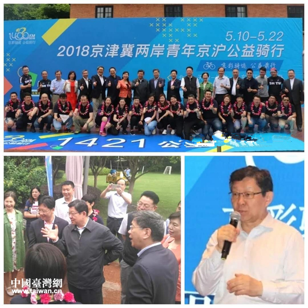 中國臺灣網(wǎng)5月25日上海訊 5月22日上午,“京彩騎跡·公益前行”——2018京津冀兩岸青年京滬公益騎行活動在上海世博園圓滿收官。原海協(xié)會會長陳德銘、上海市臺辦主任李文輝、北京市臺辦副主任于鳳英、上海市臺辦副巡視員李偉、上海市臺協(xié)會長李政宏、北京市臺協(xié)會長章啟正等出席儀式。