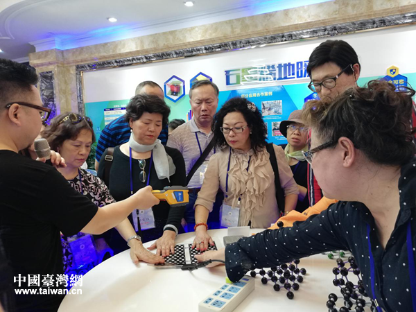 參訪團在夾江盛世東方陶瓷公司感受石墨烯地暖瓷磚高科技。(圖片來源:四川省臺聯(lián))
