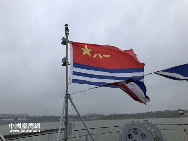 艦上八一軍旗迎風(fēng)飄揚(yáng)。(中國(guó)臺(tái)灣網(wǎng) 許秋玥 攝)