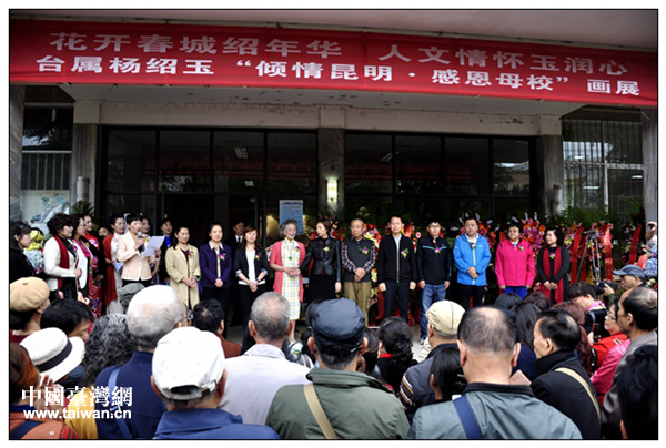 中國臺灣網(wǎng)6月21日昆明訊 6月15日,為展示改革開放40年來昆明市臺胞臺屬積極向上的精神面貌。昆明市臺聯(lián)、市美術家協(xié)會為83歲臺屬楊紹玉,聯(lián)合主辦了以“花開春城紹年華,人文情懷玉潤心”為主題的傾情昆明·感恩母校畫展,并在昆明學院藝術展覽館舉辦開展儀式。開展儀式當天,80多名臺胞臺屬以及昆明本地市民,在畫展中暢敘美好期許,感受畫作背后的暖心故事。