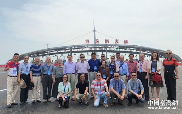 參訪團(tuán)在港珠澳大橋合影。(圖片來(lái)源:珠海市臺(tái)辦)