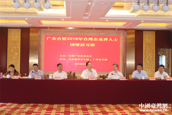 中國臺(tái)灣網(wǎng)6月27日廣州訊 6月22日至24日,臺(tái)盟廣東省委員會(huì)、廣州市臺(tái)聯(lián)、臺(tái)盟惠州支部聯(lián)合舉辦了“2018年臺(tái)灣企業(yè)界人士研習(xí)班”活動(dòng)。廣東省政協(xié)副主席、臺(tái)盟廣東省委員會(huì)主委張嘉極,臺(tái)盟廣東省委員會(huì)專職副主委鄭廣臺(tái),廣東省臺(tái)辦交流交往處處長劉小青等領(lǐng)導(dǎo)以及在粵臺(tái)商代表35人等全程參加了研習(xí)班活動(dòng)。