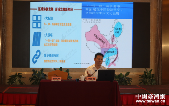 惠州市委講師團(tuán)團(tuán)長邱國耀為學(xué)員授課。(圖片來源:廣東省臺(tái)辦)