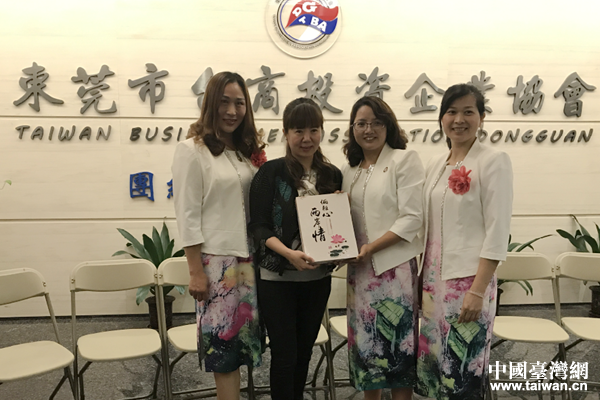 中華木蘭婦女交流協(xié)會(huì)與東莞市臺(tái)協(xié)婦聯(lián)會(huì)、東莞市臺(tái)聯(lián)儷雅會(huì)在東莞臺(tái)商協(xié)會(huì)合照。(圖片來(lái)源:東莞市臺(tái)辦)