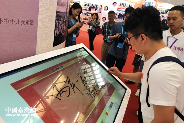 北京聯(lián)合大學(xué)研究生溫天鵬觀展后留言“兩岸一家親”。(中國臺灣網(wǎng) 趙苗青 攝)