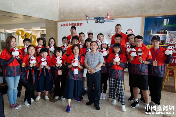 兩岸學(xué)子在四川日?qǐng)?bào)報(bào)業(yè)集團(tuán)合影留念。(圖片來源:四川省臺(tái)辦)