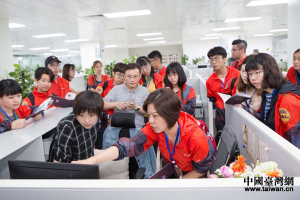 臺(tái)灣師生參觀四川日?qǐng)?bào)《航拍四川》辦公室。(圖片來源:四川省臺(tái)辦)