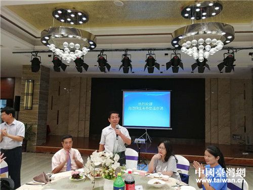 泰安市臺(tái)辦主任張慶峰致辭。(圖片來(lái)源:泰安市臺(tái)辦)