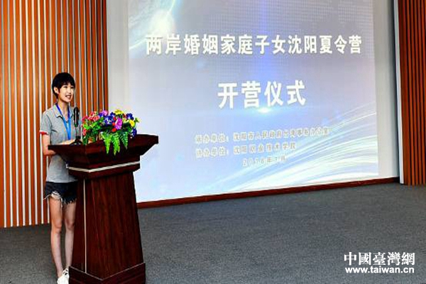 中國(guó)臺(tái)灣網(wǎng)7月18日沈陽(yáng)訊 近日,“感受抗戰(zhàn)歷史,傳承愛(ài)國(guó)精神”兩岸婚姻家庭子女沈陽(yáng)夏令營(yíng)在沈陽(yáng)職業(yè)技術(shù)學(xué)院隆重開(kāi)營(yíng)。臺(tái)灣兩岸新家庭協(xié)會(huì)和僑光科技大學(xué)40位師生參加開(kāi)營(yíng)儀式。沈陽(yáng)市臺(tái)辦副主任王莉、臺(tái)灣兩岸新家庭協(xié)會(huì)理事長(zhǎng)蔣明霞、沈陽(yáng)職業(yè)技術(shù)學(xué)院院長(zhǎng)王久成、臺(tái)灣學(xué)生代表林睿祺分別致辭發(fā)言。在開(kāi)營(yíng)儀式上,遼寧省臺(tái)辦副巡視員馬戈向臺(tái)灣學(xué)生代表授予營(yíng)旗。