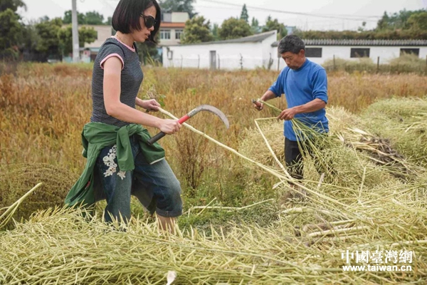 莊慈芯收割油菜。(圖片來源:四川省臺辦)