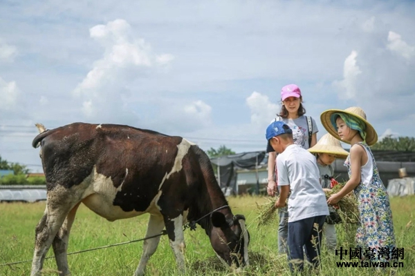 在農(nóng)莊舉行親子游活動,大家在導(dǎo)覽員介紹下,聽田園趣味講解餓科普小知識。(圖片來源:四川省臺辦)