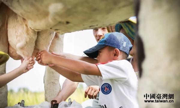 家長與孩子一道體驗擠牛奶。(圖片來源:四川省臺辦)