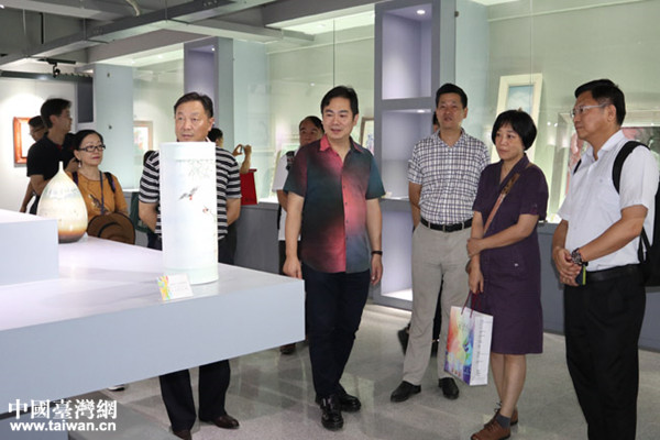 7月21日上午,交流團(tuán)一行來到景德鎮(zhèn)學(xué)院陶瓷美術(shù)與設(shè)計(jì)藝術(shù)學(xué)院進(jìn)行參觀交流,景德鎮(zhèn)市臺辦主任李旭東,景德鎮(zhèn)學(xué)院黨委委員、宣傳統(tǒng)戰(zhàn)部長方文龍,陶瓷美術(shù)與設(shè)計(jì)藝術(shù)學(xué)院院長方漫等相關(guān)領(lǐng)導(dǎo)陪同接待。