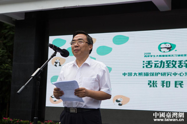 中國大熊貓保護(hù)研究中心主任張和民致辭。(圖片來源:四川省臺辦)