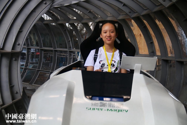 體驗(yàn)真空管道高溫超導(dǎo)磁浮車。(圖片來源:四川省臺聯(lián))