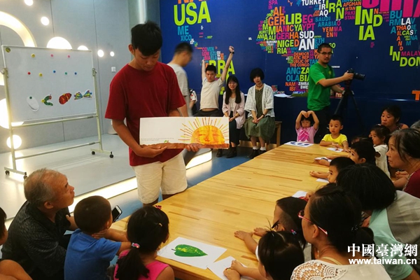 臺灣實(shí)習(xí)生潘家洋給小朋友們講故事。(中國臺灣網(wǎng) 王莉婷 攝)