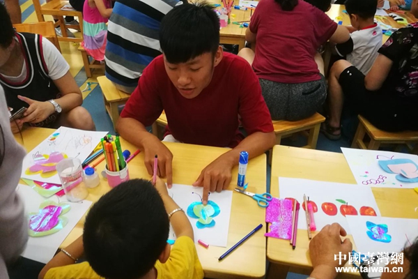 臺灣實(shí)習(xí)生潘家洋與小朋友們互動。(中國臺灣網(wǎng) 王莉婷 攝)