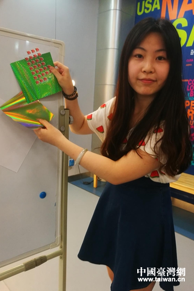 大陸實(shí)習(xí)生張京靈講述手工課。(中國臺灣網(wǎng) 王莉婷 攝)