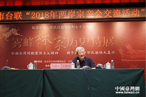 臺(tái)灣抗日志士親屬協(xié)進(jìn)會(huì)創(chuàng)會(huì)理事長(zhǎng)林光輝作專題報(bào)告。(圖片來源:北京市臺(tái)聯(lián))
