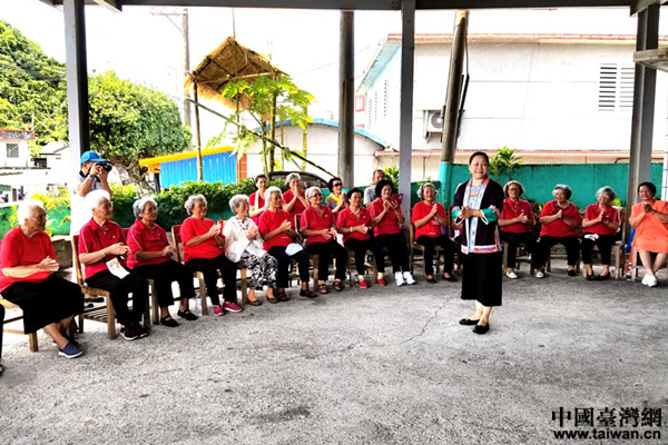 為豐濱鄉(xiāng)日托所老人表演百色民歌。(圖片來源:廣西百色市臺(tái)辦)