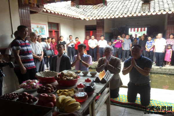 邱鏡淳一行行跪拜禮。(圖片來源:梅州市臺辦)