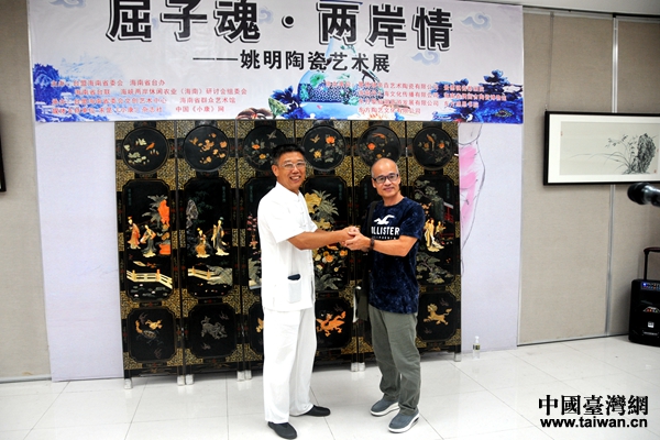 中國臺灣網(wǎng)8月28日?谟崱∮膳_盟海南省委會,海南省臺辦、海南省臺聯(lián)聯(lián)合舉辦的“屈子魂·兩岸情——姚明陶瓷展”,8月27日下午在海南省群眾藝術(shù)館舉行開幕儀式。