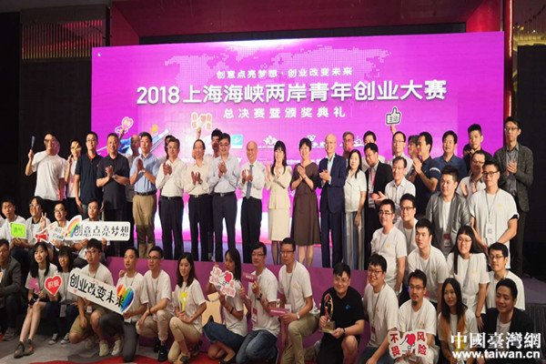 中國(guó)臺(tái)灣網(wǎng)8月29日上海訊 2018上海海峽兩岸青年創(chuàng)業(yè)大賽總決賽暨頒獎(jiǎng)典禮于8月24日在上海市金山區(qū)順利落下帷幕。上海市金山區(qū)委書(shū)記趙衛(wèi)星,上海市海促會(huì)會(huì)長(zhǎng)李雷鳴,上海市金山區(qū)委常委、副區(qū)長(zhǎng)張權(quán)權(quán),上海市金山區(qū)委常委張恂,上海市科技創(chuàng)業(yè)中心書(shū)記王震,上海市就業(yè)促進(jìn)中心副主任楊永華、上海市臺(tái)協(xié)榮譽(yù)會(huì)長(zhǎng)李茂盛、競(jìng)衡集團(tuán)董事長(zhǎng)張簡(jiǎn)珍、臺(tái)灣國(guó)際創(chuàng)新創(chuàng)業(yè)發(fā)展協(xié)會(huì)秘書(shū)長(zhǎng)楊士進(jìn)、全國(guó)臺(tái)企聯(lián)副會(huì)長(zhǎng)林子凱等嘉賓出席活動(dòng)。
