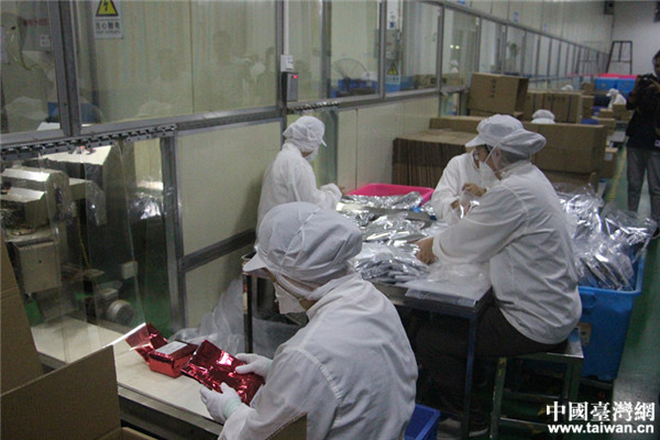 工人正在進(jìn)行產(chǎn)品分裝。(圖片來源:南寧市橫縣臺(tái)辦)