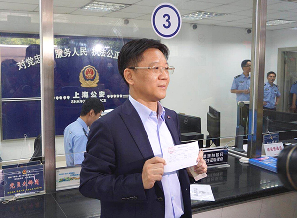 上海市臺灣同胞投資企業(yè)協(xié)會會長李政宏提交居住證申領資料。(上海市臺辦供圖)