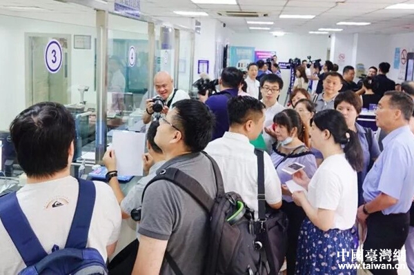 9月1日是申領(lǐng)辦證的第一天,上海市各受理點迎來了不少港澳臺居民。(圖片來源:上海市臺辦)