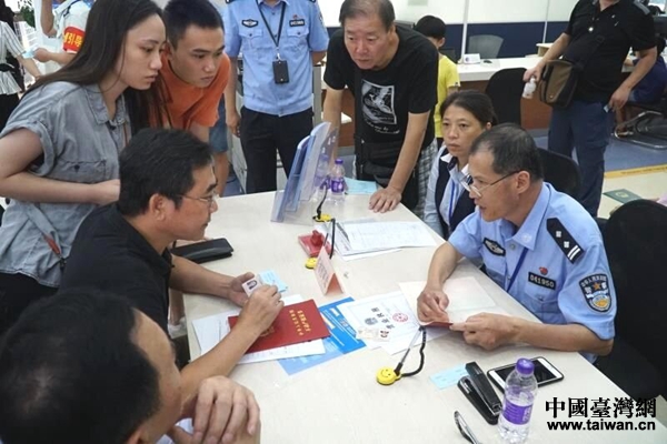9月1日,港澳臺居民正在辦理居住證。(圖片來源:上海市臺辦)