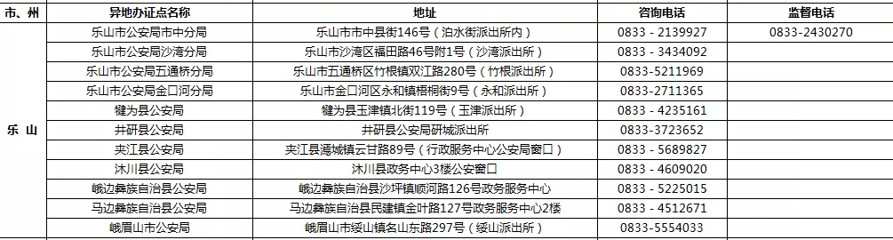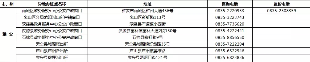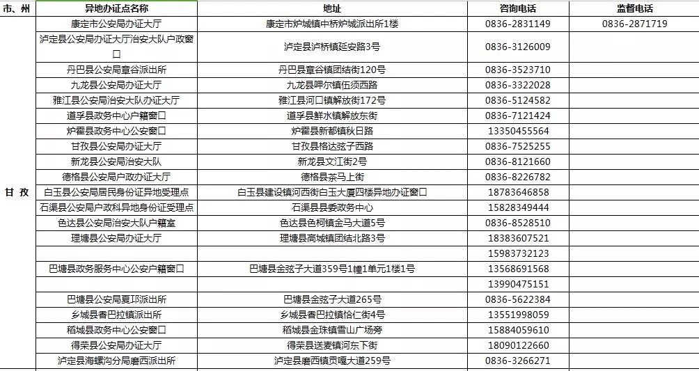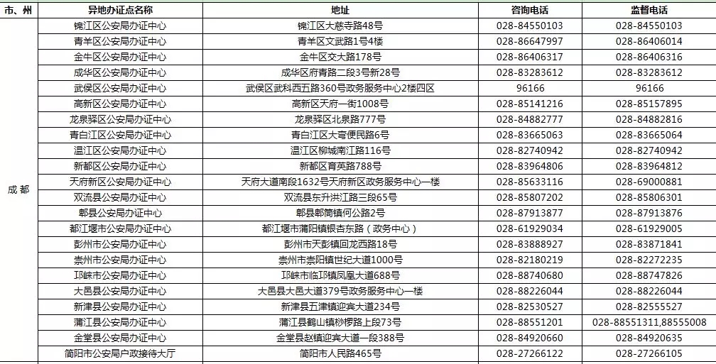 四川省港澳臺居民居住證受理點名稱、地址,咨詢及監(jiān)督電話: