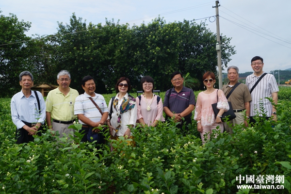 臺灣制茶工業(yè)同業(yè)公會一行考察橫縣中華茉莉園。(圖片來源:廣西南寧市橫縣臺辦)