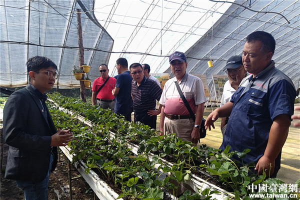 考察新民市草莓種植基地。(圖片來源:沈陽(yáng)市臺(tái)辦)