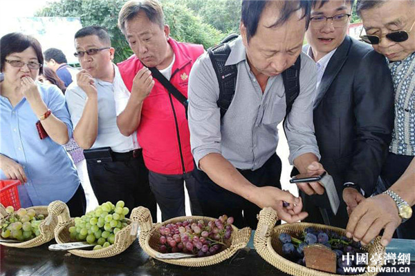 參訪蘇家屯區(qū)馬耳山農(nóng)業(yè)采摘園。(圖片來源:沈陽(yáng)市臺(tái)辦)