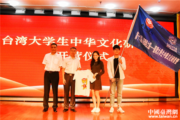 李功勤則向大家介紹了世新大學的基本情況,希望有更多的大陸學生到臺灣學習,同時也希望臺灣大學生能夠有機會到大陸學習和實習。魏章柱、孫忠峰分別向臺灣大學生代表授營旗和贈送紀念衫。