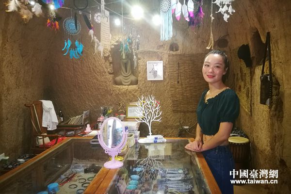 80后美女老板返鄉(xiāng)創(chuàng)業(yè)建立窯洞商鋪。(中國(guó)臺(tái)灣網(wǎng) 王莉婷 攝)
