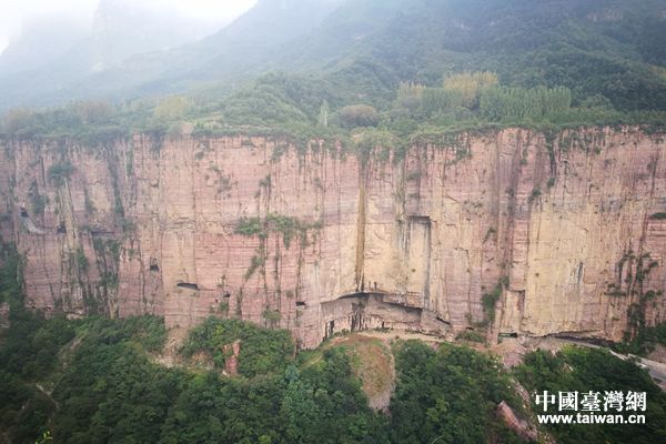 郭亮村歷經(jīng)五年零兩個(gè)月鑿出了“絕壁長(zhǎng)廊”。(中國(guó)臺(tái)灣網(wǎng) 王莉婷 攝)