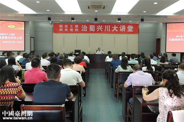 中國臺(tái)灣網(wǎng)9月27日成都訊 9月21日上午,中共四川省委臺(tái)灣工作辦公室主任羅治平在第31期“治蜀興川”大講堂作了題為《當(dāng)前兩岸關(guān)系形勢與對臺(tái)工作》專題講座。該講堂由四川省直機(jī)關(guān)工委、省直機(jī)關(guān)黨校舉辦,省直機(jī)關(guān)工委常務(wù)副書記、省直機(jī)關(guān)黨校校長王承先主持講座。省直機(jī)關(guān)工委和省直機(jī)關(guān)黨校全體干部職工、第87期處級干部進(jìn)修班、第48期科級干部進(jìn)修班全體學(xué)員聆聽了講座。