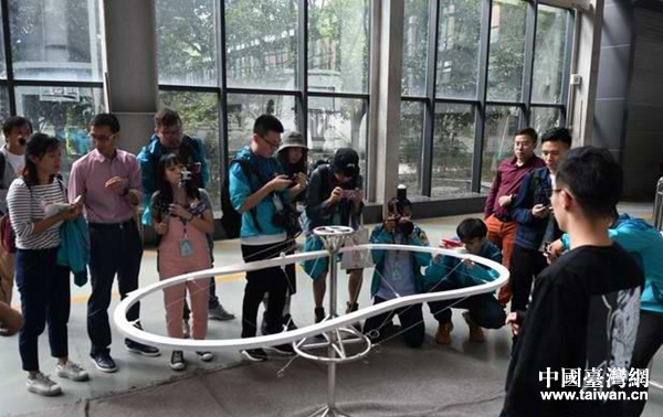 上磁懸浮力學(xué)課、參觀機車動能性能試驗平臺。(四川省臺辦 陳治普 攝)