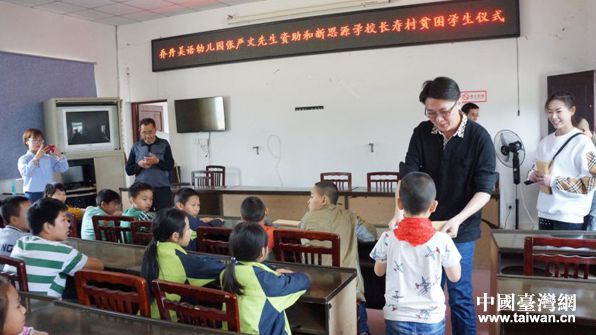 中國臺灣網(wǎng)10月11日德陽訊 近日,四川省德陽市臺資企業(yè)協(xié)會副會長、四川喬登美語培訓(xùn)事業(yè)機(jī)構(gòu)執(zhí)行董事張嚴(yán)文及其夫人李丹,先后前往德陽市旌陽區(qū)、新鎮(zhèn)長壽村、中江縣南山鎮(zhèn)、中江縣永太鎮(zhèn),向40名貧困家庭的中小學(xué)生捐贈助學(xué)金共計21900元。
