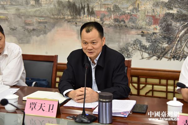 玉林市委副書記、組織部部長覃天衛(wèi)在會(huì)上講話。(圖片來源:玉林市臺(tái)辦)