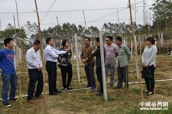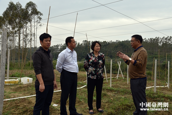 廣西玉林市臺辦干部、臺協(xié)會代表在貧困村博白縣松旺鎮(zhèn)周北村百香果種植基地開展幫扶活動。(圖片來源:玉林市臺辦)
