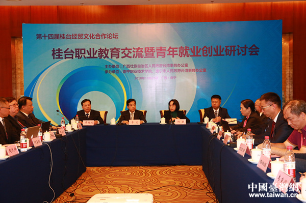 桂臺(tái)職業(yè)教育交流暨青年就業(yè)創(chuàng)業(yè)研討會(huì)在南寧舉行。(圖片來(lái)源:廣西臺(tái)辦)