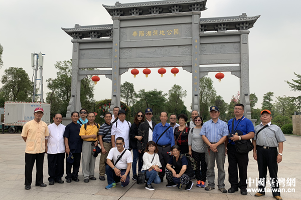 圖為臺南市堪輿文化學(xué)會參訪團在華陽湖濕地公園合照。(圖片來源:東莞市臺辦)