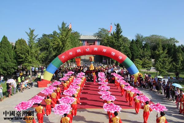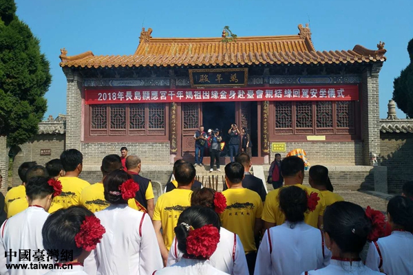 中國臺灣網(wǎng)11月12日長島訊 為進一步發(fā)揮媽祖文化在“兩岸一家親”中的橋梁紐帶作用,增進兩岸同胞心靈契合,山東省煙臺市長島縣積極發(fā)揮省級海峽兩岸交流基地——廟島顯應(yīng)宮的交流平臺作用,全力打造對臺交流工作特色品牌,經(jīng)過精心籌備,在9月組織開展了一次凸顯膠東風(fēng)情、長島特色,規(guī)模宏大、有影響力的赴臺媽祖文化交流活動——“2018年長島千年媽祖因緣金身赴臺結(jié)緣會親活動”。