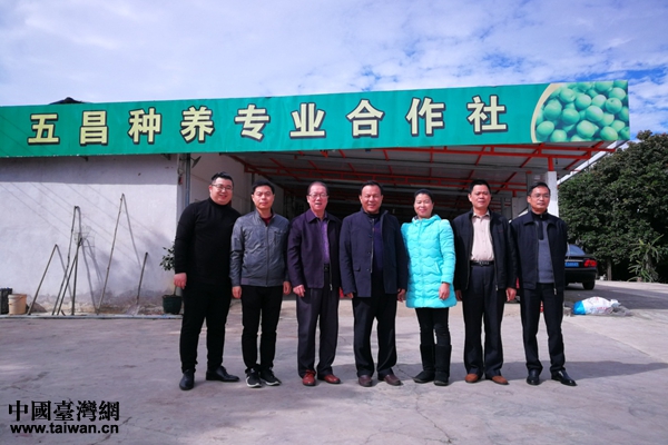 市委臺(tái)辦主任王忠豪(左四)到豐順縣臺(tái)資企業(yè)五昌高新農(nóng)業(yè)發(fā)展有限公司調(diào)研。(圖片來(lái)源:梅州市委臺(tái)辦)
