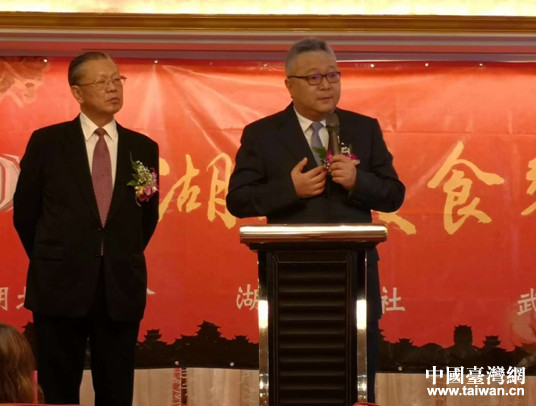 中國國民黨前主席洪秀柱、臺灣退役將軍戴伯特、臺北市湖北同鄉(xiāng)會理事長陳興國、湖北文獻社社長汪大華、臺灣武漢市同鄉(xiāng)會理事長陳光陸,武漢臺資企業(yè)協(xié)會會長、美加置業(yè)有限公司董事長蕭永瑞以及湖北省、武漢市臺辦、武漢市商學院有關領導出席了饗宴。